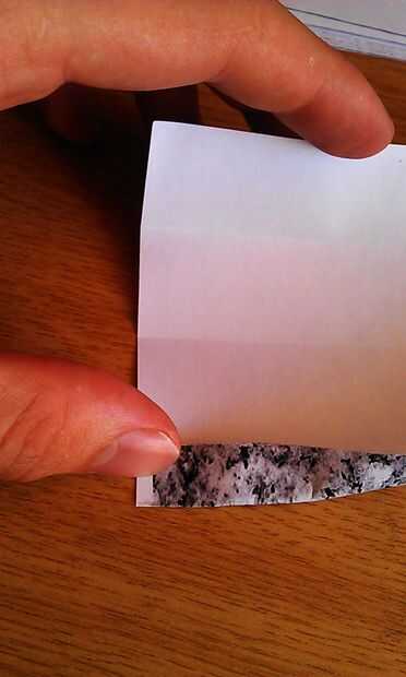 Valle de doblar la esquina inferior derecha, como si se dobla el papel otra vez en 8ths, pero sólo doblar el cm de fondo más o menos. Se despliegan. Esto se llama un pliegue de la pauta, se utiliza como marcador para más adelante. Ver fotos de da.