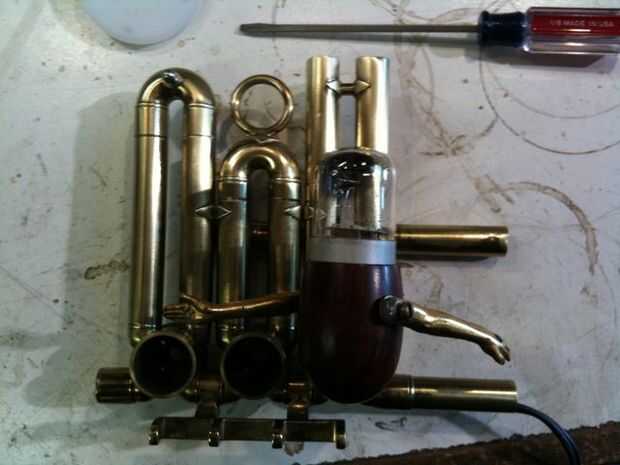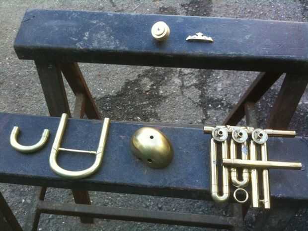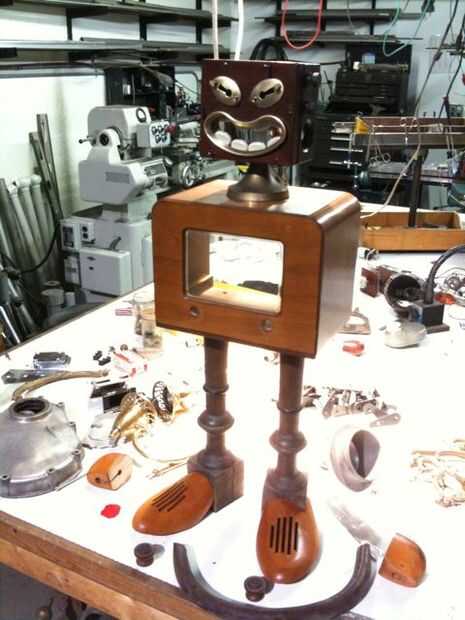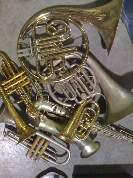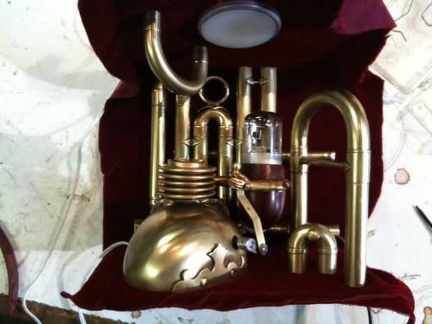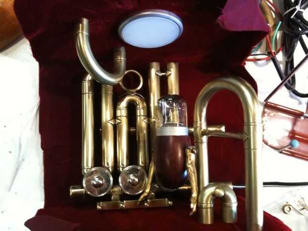 Un viaje a un depósito de chatarra dio vuelta encima de un montón de instrumentos de viento rotos y me impresionó cómo parecían intestinos así que me puse a hacer una especie de sala de máquinas fuera de ellos en el vientre de robots.