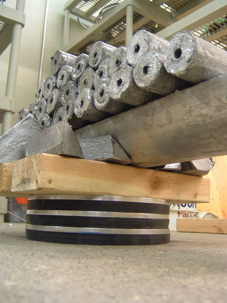 También hicimos llevar pesas que se deslizan dentro de la base de los tubos principales para la estabilidad adicional.  Esto resultó para ser totalmente innecesaria pero que ya habíamos hecho por el momento que hemos averiguado que no los necesitamos.  Para hacer las pesas nos corte una sección de 2 pies de la misma tubería que utiliza para el tubo principal.  Tapa los extremos y llena la mitad con plomo fundido.  no es broma!