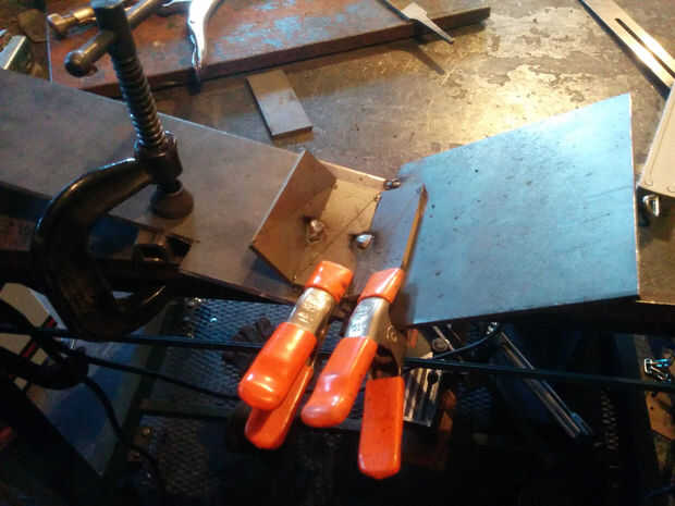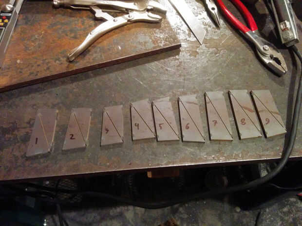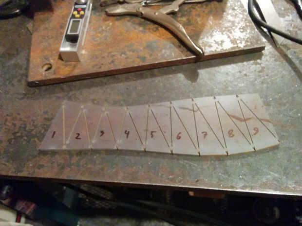 Esa noche solía Blender calcula el desplazamiento lineal de la esquina lejana de cada pieza desde el plano opuesto. Luego usé mi medidor de altura para medir cada pieza, afinando hacia adelante y hacia atrás hasta que estaba tan cerca como podía conseguirlo. (Generalmente dentro de 0.05 mm.) Y esta vez lo que realmente el trabajo! Fue más lento de lo que quería, pero confiablemente consiguió buenos resultados. Usando esta técnica y una plantilla de 140 grados tengo el resto de las piezas de tentáculo soldadas con autógena juntas.