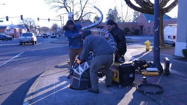 I redactado a unos amigos, todo cargado en una furgoneta y condujo hacia abajo. Esto fue particularmente estresante ya que no había tenido la oportunidad de ver el sitio de instalación después de que la ciudad había hecho el trabajo concreto.