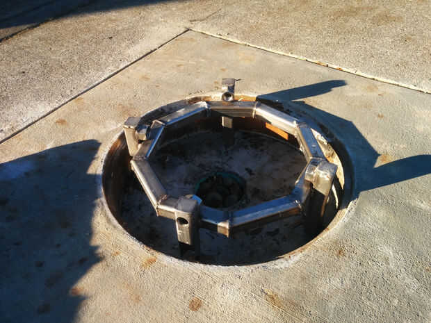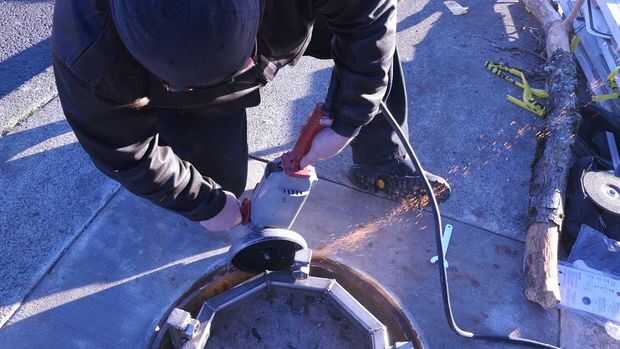 Es un sentimiento al ver que el poder de su arte ha convencido a una ciudad para rasgar para arriba su acera e instalar un marco de acero inoxidable raro en un agujero en el suelo, Déjame decirte! Por desgracia, no fue bastante el anillo de la boca que yo esperaba. Este promedio fue menor que había planeado y tuvo 3 lengüetas del reborde sobresale del anillo, de impedir que el tentáculo deslizarse en su lugar. Y no podía alcanzar la amoladora sin cable que había traído para este tipo de emergencias.