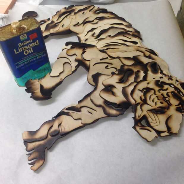 Sólo frota algún aceite de linaza y dejar secar por un día. También parecía muy cool cuando detrás encendido. Caliente pegamento en un trozo de madera contrachapada que es ligeramente blanco manchado.