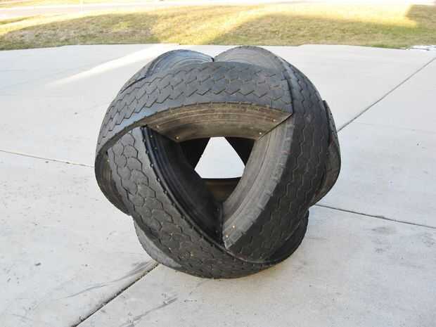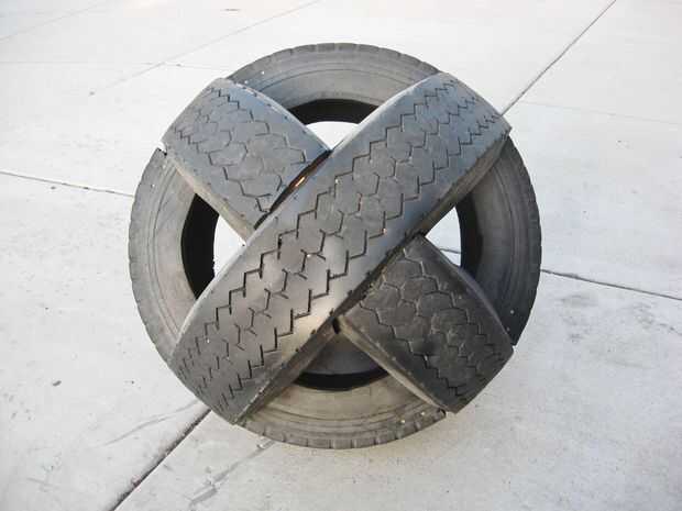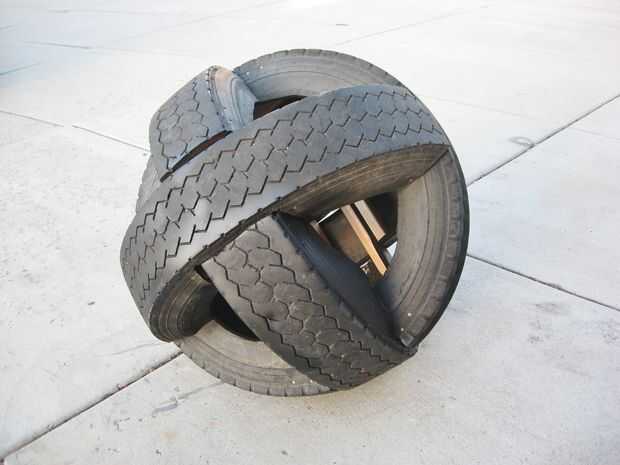 Se trata de una bola gigante de tres neumáticos de camión semi intersección.