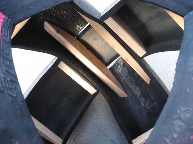 Ambas mitades del neumático #3 entonces fueron atornilladas en lugar así.