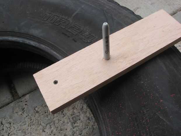 Hice una marca simple de algunos desechos para mantener un marcador cerca de tres pulgadas del interior de la plantilla borde de la llanta y marcado de los neumáticos.