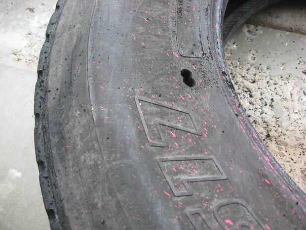 Si vas a probar esto, tenga en cuenta que toma mucho más esfuerzo que puede sospechar. Sin embargo, un poco de ensayo y error te mostrará la cantidad de fuerza necesaria para cortar a través de un neumático.