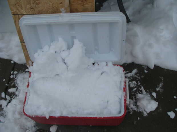 Seguir haciendo esto hasta que la nieve es comprimida a la parte superior de la nevera.