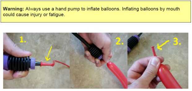 Para hinchar el balón, asegúrese de insertar la boquilla de la bomba completamente antes de inflar. Después de inflar el globo, pellizque la parte no inflado del balón que despegaba sin aire se escapa. Deje suficiente no inflado del globo para poder atar el nudo.