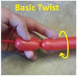 • Giro básico: Tome el balón con la mano no dominante en el lado cerca del nudo. Gire el balón con la mano dominante. Al torcer del globo, siempre asegúrese de girar el globo de la misma dirección. Use su mano no dominante a la medida de la longitud de cada burbuja. Este es el bloque de edificio básico de globoflexia y se utilizará a menudo. Es importante mantener los segmentos en cada extremo para que el balón no Desenrolle el sí mismo. Para mantener el globo torcido, necesitamos a cualquiera crear un toque de bloqueo o una torcedura del sujetador.