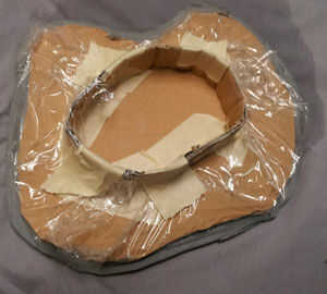 Ya que tengo pensado quitar el cartón antes de disparar, yo envuelto en plástico. Probablemente no es necesario, pero es una gran superficie, y quería eliminar fácilmente una vez que la arcilla se seca.