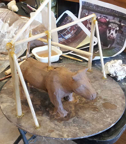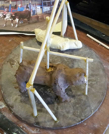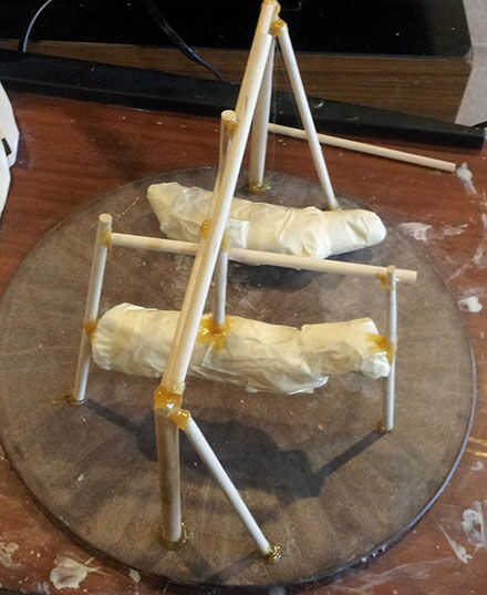 Usé tacos y caliente derretimiento pegamento para crear un marco para la celebración de los bueyes en su lugar. El cuerpo podría se han celebrado en el lugar de muchas maneras pero esto funcionó bien para mí. El marco apoya también una bolsa de plástico cuando quise dejar el trabajo por un tiempo.