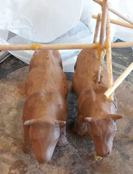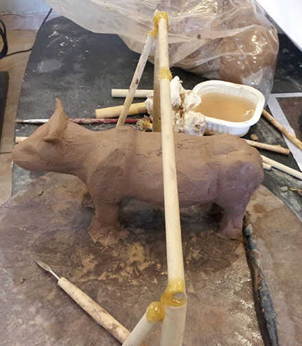 Como la figura se trabaja encendido, pasa el tiempo y la arcilla se configura un poco. Eventualmente se convierte en lo suficientemente firme para sostenerse en su lugar sin la ayuda de la estructura.