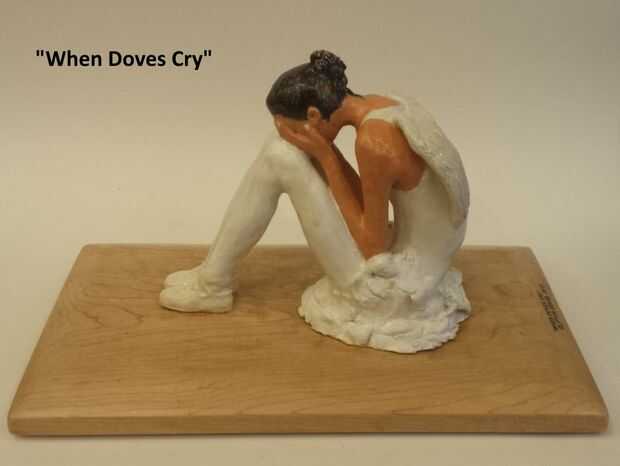 La escultura en este demo se llama "El alarido". Muestra a un pescador en un muelle, con una maraña de líneas de trampa de langosta (llamada localmente un gruñido) con una expresión no muy feliz en su rostro. Boyas y una gaviota de "arte po