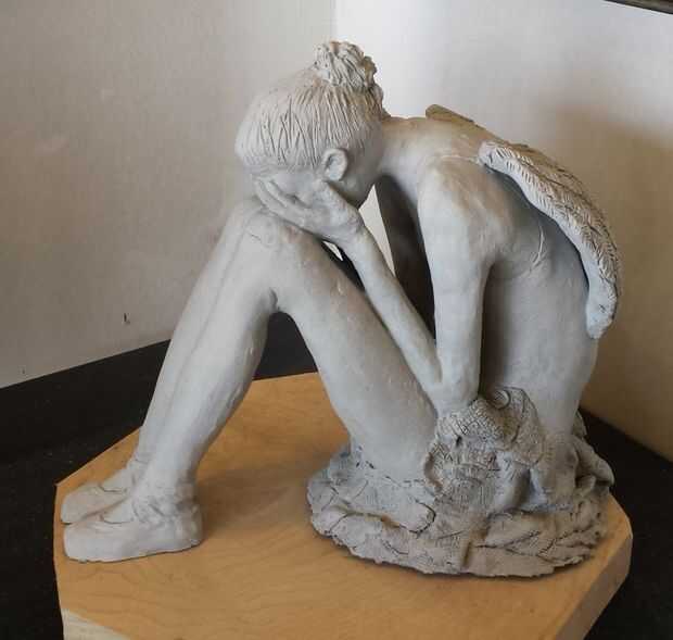 La arcilla utilizada aquí fue arcilla de papel bajo fuego. Era sopa disparado a cono 06. Tengo una rampa de remojo regulador de temperatura conectado a un pequeño horno. Se eleva la temperatura más lentamente para mis esculturas que en el caso en un horno de alfarero.