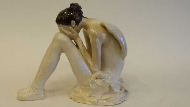 Voy a intentar reparar la estatuilla por pulido de esmalte donde ha desmenuzado, luego aplicar el nuevo esmalte y refiring.