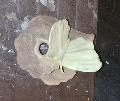 En este caso puse brillo en la mariposa y un toque en las partes altas de la parte exterior de la corteza. He dejado el interior con ninguna cubierta de esmalte transparente para dar un piso o alfombra de acabado.