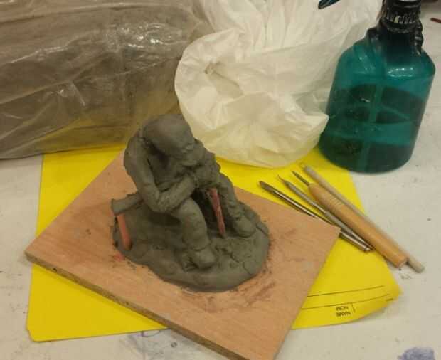 Escultura en cerámica: la figura de 12 pulgadas, armadura de madera