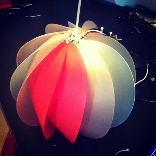 Externalización de datos es una escultura sensible que realiza luces y sonido cuando presencia de sentimiento de las personas.