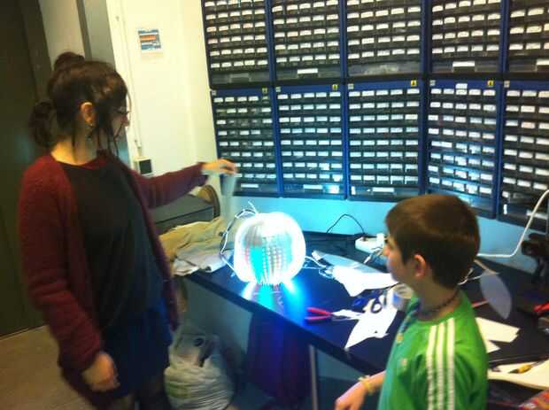 En este proyecto, el sensor de presencia máximo Botix (1 x Distanciómetro ultrasónico – Maxbotix LV-EZ0) activa las tiras de led y también el escudo de mp3.
