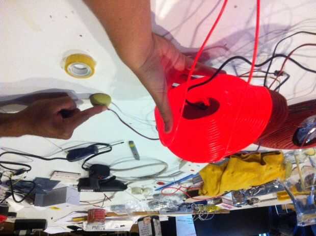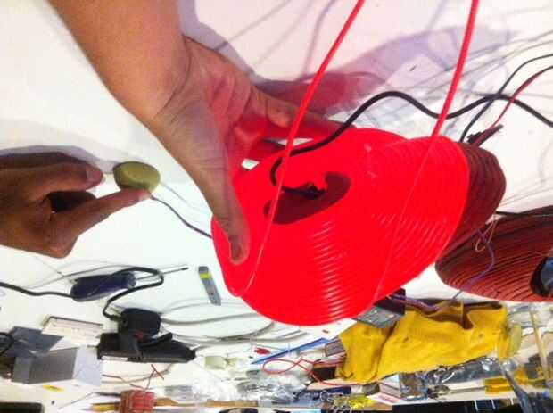 Cuando se realizaron todas la interactividad, cercó El alambre alrededor de la forma de madera pegado con pegamento caliente.