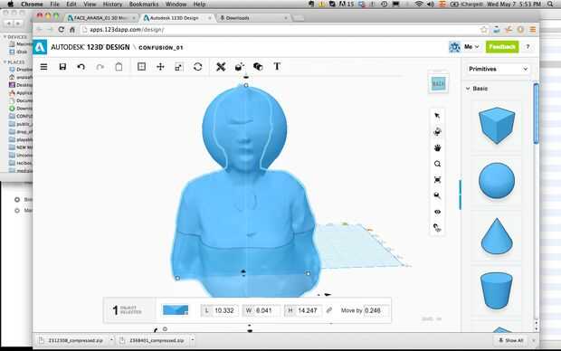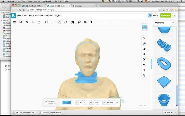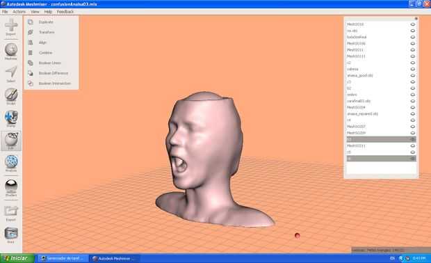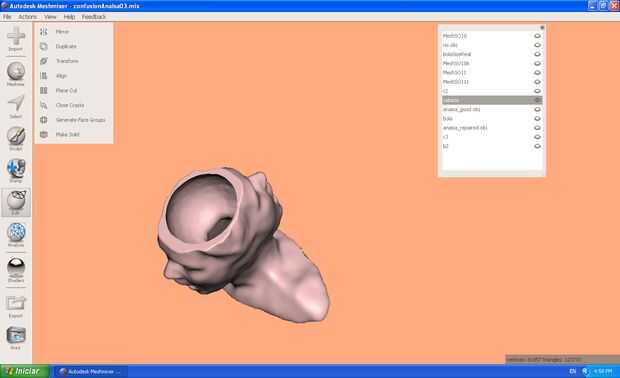 Midió la bola de plasma y restarse de la cabeza 3d mediante software Meshmixer de 123d catch.