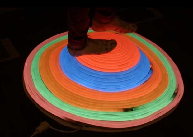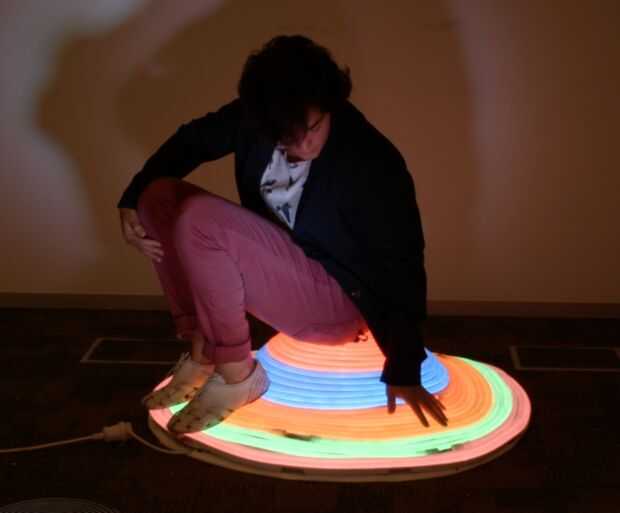 La ola de felicidad su una escultura interactiva que genera una onda de luz exuberante y colorida cuando caminar en ella. El trabajo es parte de psicosomática Series.Work desarrolló durante arte en residencia en creatividad y estudios de la cognición en UTS, Universidad de tecnología de Sydney, Australia. Noviembre de 2014.