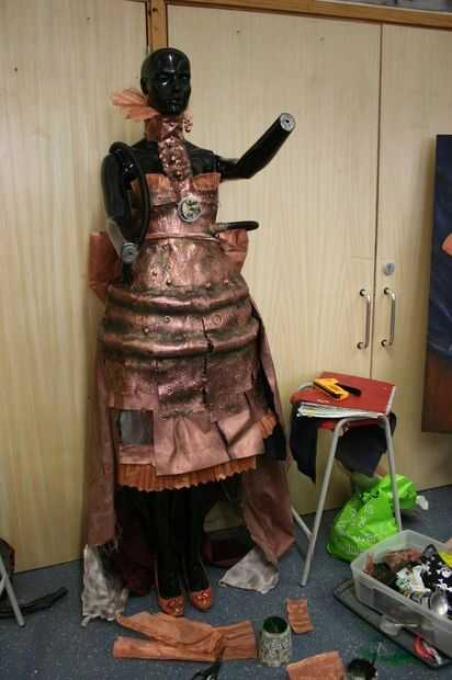 he creado esta escultura de vestido después de estudiar vapor-punk para mi examen de arte Alevel. El enanito 6 pies + (denominado a nefertiti por mi clase de arte) fue prestar de mi departamento y la mayor parte del equipo utilizado fue: