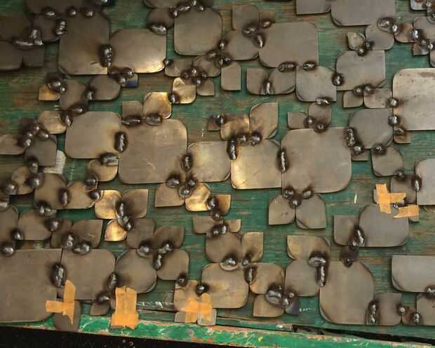Cuando primero aprendí a soldar me enseñaron una serie de trucos para evitar deformaciones, pero en este caso, el alabeo es la meta. De la abrazadera hacia abajo de cada una de las piezas que va a soldar. Soldaduras muy pequeñas, controladas en el espacio donde se encuentran cada una de las piezas presenta distorsión. El metal soldado contratos como se refresca, que reúne las piezas formando un ligero ángulo. La pieza crece, la distorsión se vuelve más extrema. Os recomiendo MIG porque soldadura TIG, si se hace correctamente, tiende a causar la menor distorsión. Es una soldadura más suave, más limpia. A pesar de todo, no hay necesidad para aumentar el amperaje o velocidad del alambre. Siga las instrucciones para el grueso de su metal.