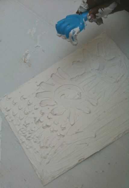 Mostrar la textura que puede obtener por abofetear a la imagen lado a lado... con los dedos... Esto da un aspecto elevado de la onda que es ideal para las olas del mar o montañas en escultura de la relevación.