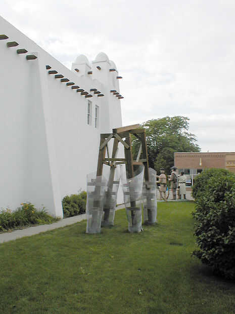 El primer paso, cuando se trabaja en una gran estatua en el sitio, es un concreto premezclado y viértalo en el suelo con algunas varillas que él puede montar cuatro camionetas 4 x 4. Luego construye la estructura básica con camionetas 4 x 4 y tira de madera de espaciadores.