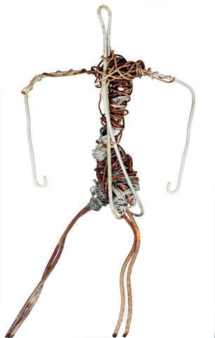 Gire los trozos de alambre alrededor de la percha, construir esta hasta tiene algo aproximándose a la forma humana, o inhumanas, dependiendo de su materia.