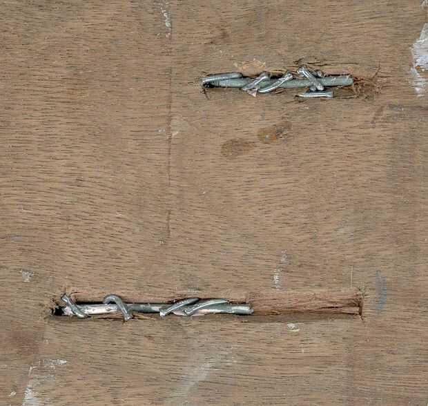 Martillo y doble sobre pines panel alrededor del alambre para aplanar y seguro. Encuentro mejor la vieja técnica del zapatero, agarre la figura con las rodillas y ausente del martillo en la base. De esta manera su escultura no será machacado, lamentablemente no puedo decir lo mismo sobre cualquier otra cosa, así que ten cuidado cuando laten sus grietas base!