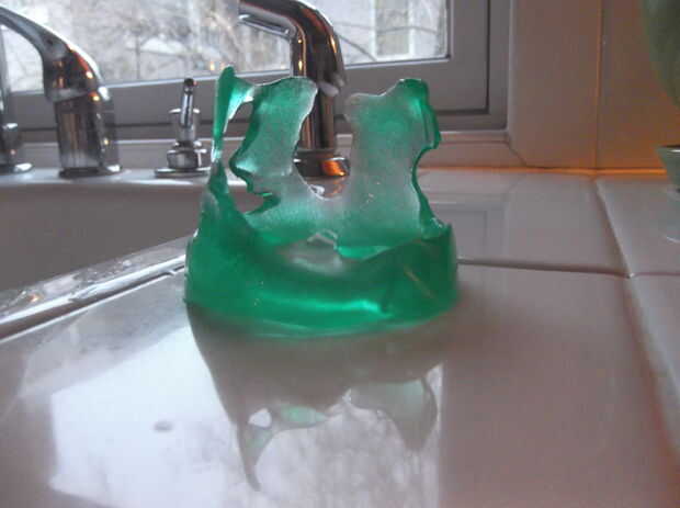 muestra cómo crear una lágrima de hielo. Estamos teniendo un evento de arte y hielo en un lago local en Minneapolis y nos estamos congelando agua en lo que podemos. Algunas cosas de trabajo, algunas cosas no. Agua convirtiéndose en un sólido es una c