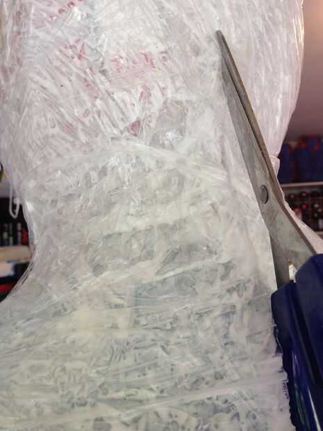 Luego envuelva todo con bolsas de plástico para que no se pegue.