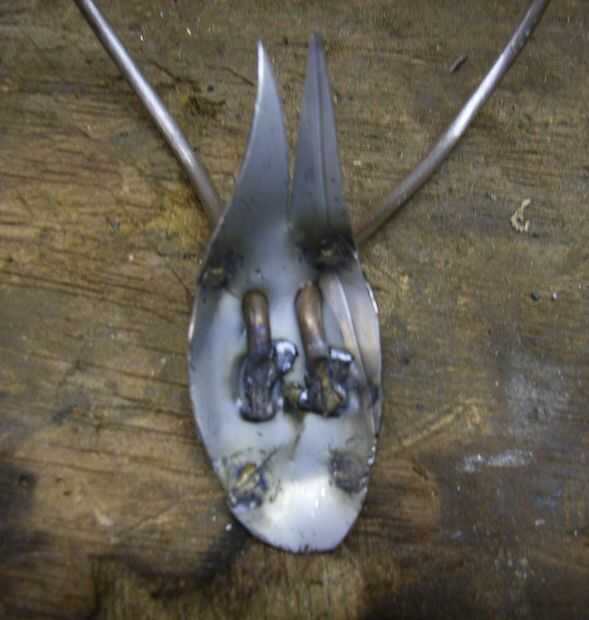 Dejar un poco de metal para el cuello, luego punto de soldadura en el cuerpo, que ahora tiene un insecto en estado de embriaguez.