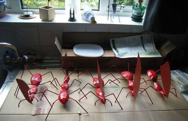Para obtener un poco de textura en los cuerpos, mezclé algunas gruesa arena seca con la pintura roja brillante.