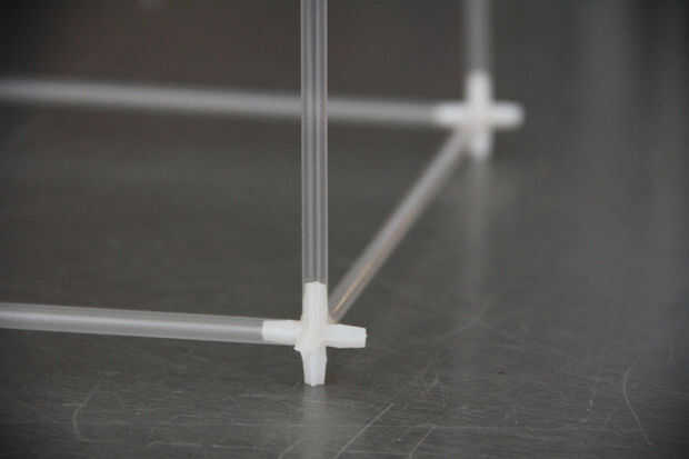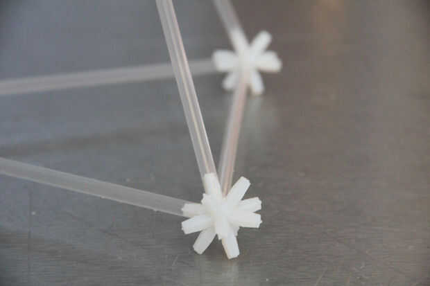 vi una construcción paja modular realmente increible en Kickstarter llamado LINX, y quería probar a crear mi propio usando el 3D impresora en la oficina de Instructables. La idea básica es crear pequeñas piezas de plástico que pueden conectarse con Pajitas de plástico regulares para crear esculturas 3D geométricas únicas.