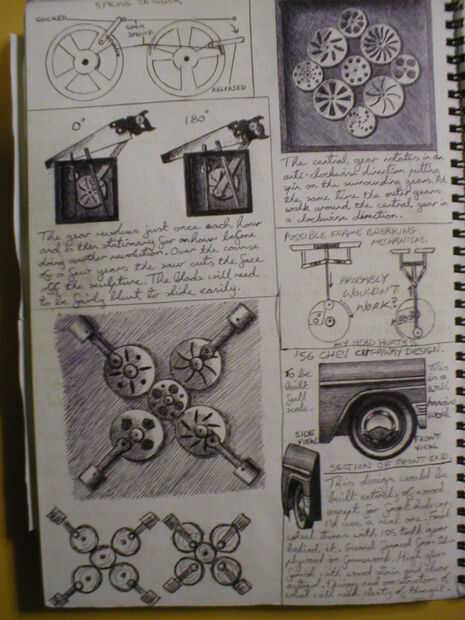 El proceso de diseño para mí generalmente comienza con una idea de una manera interesante y artística que me gustaria algo para moverse. Entonces empiezo a procesar y refinar mi idea en mi mente, pensando a través de la mejor manera de lograr este movimiento en un sentido práctico, sino también para el efecto artístico. En ocasiones voy a hacer pequeños dibujos si el mecanismo se parece un poco demasiado complicado o el movimiento demasiado difícil imaginar completamente, pero sobre todo trabajo de cabeza a las manos y saltar directamente a las cosas. Inspiración puede venir de casi cualquier fuente, pero no me inclino a copiar. Si he visto algo que me siento inspirado para construir, generalmente solo uso la idea muy básica y modificar completamente para mis propios propósitos creativos. Durante todo el proceso de construcción otras ideas vienen a menudo a mí. Estos incorporar en mi proyecto actual, o a veces utilizarlos proyectos en el futuro. Cuando estoy construyendo una obra, estoy tan absorto en lo que estoy haciendo que no es ninguna sorpresa para mí que otras ideas, lo importante es construir, y fluirán ideas.