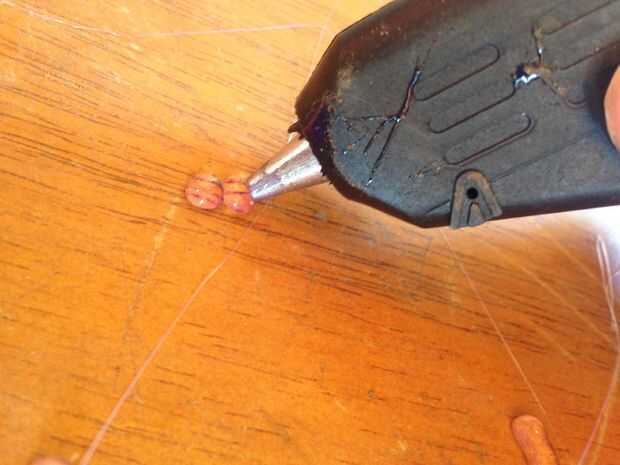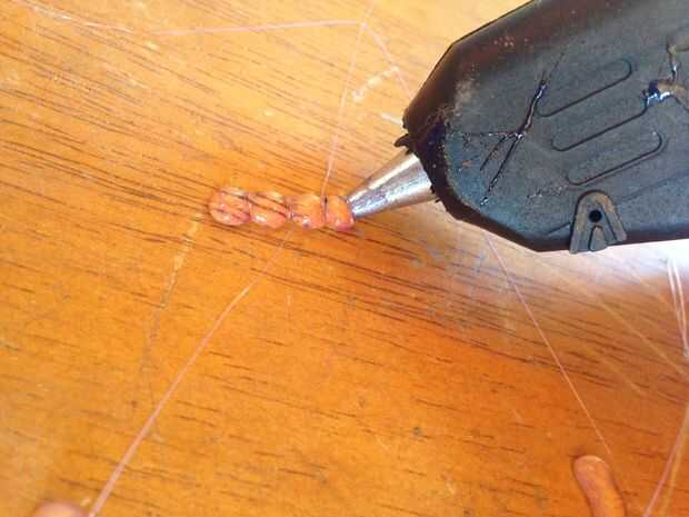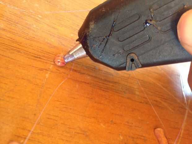Utilice la pistola de pegamento para crear pequeños círculos que conecte, trate de no levantar su arma y mantener en la superficie.