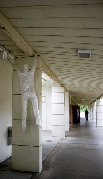 Esculturas hechas de plástico y cinta de embalaje, lo extraña...