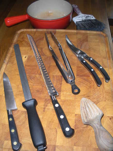 Cuchillo jamonero - debe ser muy fuerte. Un largo y delgado es ideal. Utilizar una lijadora de banda con un papel de calidad fino 600 a afilarlo. Funciona mejor que un hierro afilado.