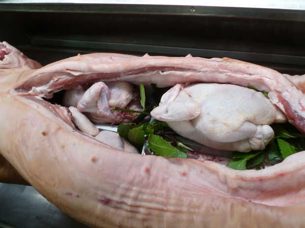 Ahora también sería un buen momento para considerar qué cosas se pueden hacer con las sobras del cerdo: costillas, Eisbein, un Chile apropiado (50% carne de res, carne de cerdo 50%), más relleno de sandwich, Inglés empanada de carne de cerdo y así sucesivamente de repuesto.