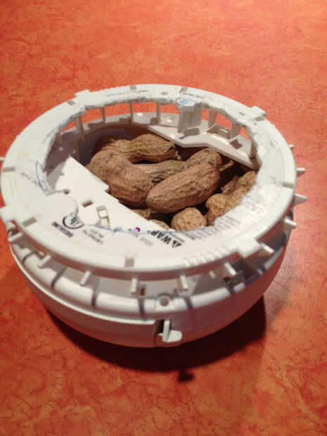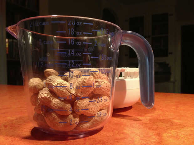 Era curioso en cuanto a cuánto pudiera sostener mi nuevo compartimiento secreto. Por lo que he probado con una unidad de medida internacional común: el cacahuete. Mide en más de 1 taza, y lo que han celebrado probablemente unos cuantos más.