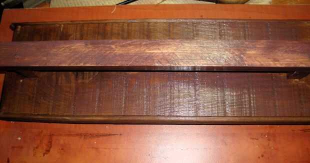 Ver el video de arriba para una guía completa de este proyecto!Este proyecto simple utiliza 3 tablones de madera de plataforma con dos tiras de respaldo en la espalda para mantenerlos juntos! La madera fue lijada y dañada por ese "encanto rústico&quo