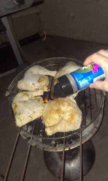Iniciar la parrilla y deje que las llamas descienden un poco hasta que veas algunos de Ceniciento de vuelta del carbón de leña gris. Cuando sus carbones son listos los pollos marinados del hueso hacia abajo primero. Añadir esencia de especia de un poco más Emeril Lagasse a los lados superiores de la carnosos del pollo.