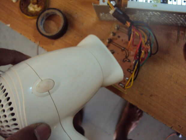 El recubrimiento con un secador de pelo o pistola de aire caliente seco.