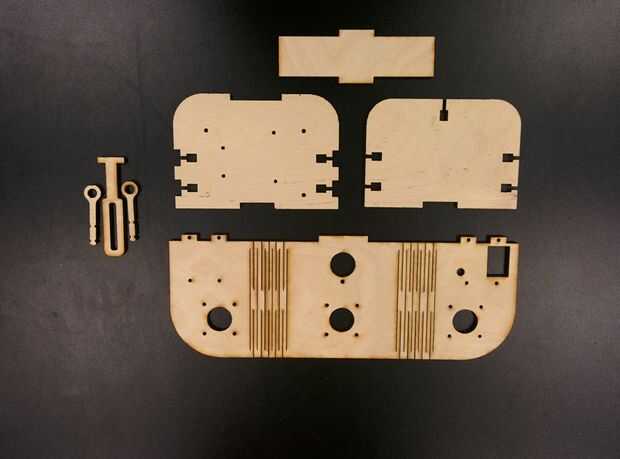Aquí descargar el archivo de diseño y corte en el 1/4 '' madera usando un cortador láser. Usted podría probablemente también cortar estos de plexiglás a excepción de la parte curva, ya que no sería lo suficientemente flexible.