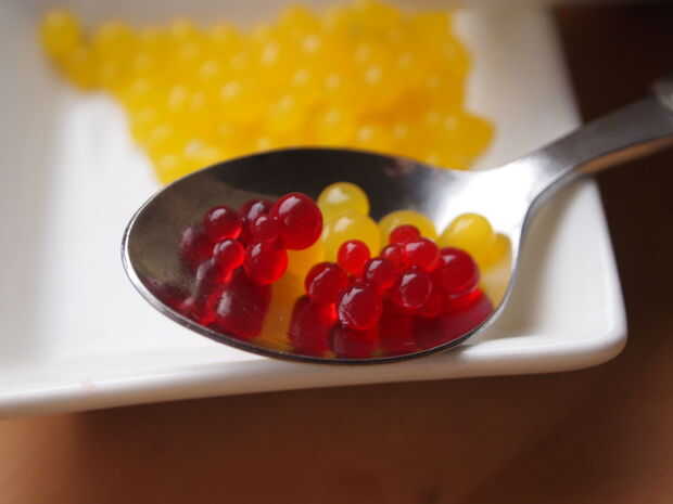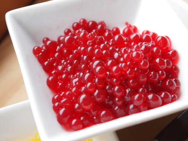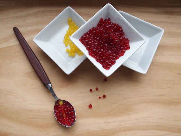 Otros métodos comunes, si gusta experimentar con la gastronomía Molecular, participarán otros gelificantes: alginato de sodio y calcio lactato así como otros. Los que no son necesarios para nuestro Instructable. Si nunca has hecho nada como esto antes y le encanta lo que hacemos a través de este Instructable, puede que desee comprar algunos otros ingredientes y probar algunas técnicas avanzadas más adelante. Con este método, crea esferas con una textura similar a la gelatina arándanos - un poco suave pero cuajado. En una técnica más avanzada, que requieren algunos otros ingredientes, puede hacer un proceso de esferificación que crea esferas de aspecto similares, con una delgada membrana externa y todo líquido contenido dentro de él. Este Instructable no es para ese método, pero esto es una gran lección introductoria en algunas Ciencias de los alimentos!