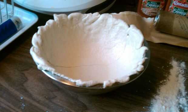 Línea el bol con la masa. Puede ayudar a limpiar el spray antiadherente el borde superior del recipiente y presione los bordes de la masa en el borde de la taza. De lo contrario la masa tendrá una tendencia a deslizar hacia abajo en el recipiente. Ahora poner una capa de queso y aderezos en el fondo del tazón, y estarás listo para empezar a hacer el centro.